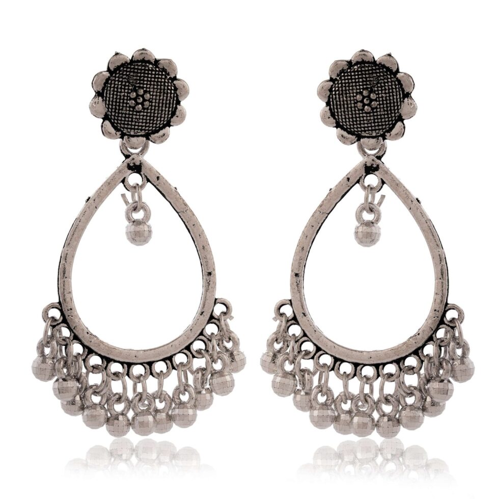 Earrings for Women Traditional Silver AZ838-OXidised Jhumka Set | German Silver Chand Baliyan & Jhumkas Earrings | Birthday & Anniversary Gift -AZ838-OX-ER34