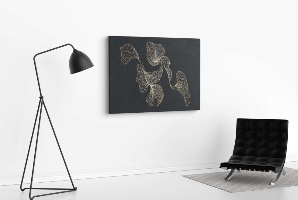 A luxurious golden round frame artwork to complement any interior design.