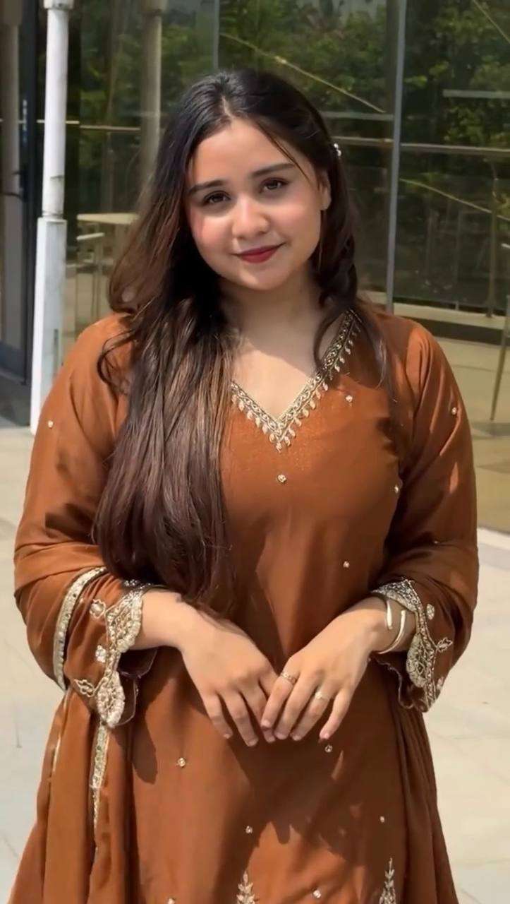Women’s Georgette Sequence Moti Work Straight Kurti With Salwar and Dupatta Set